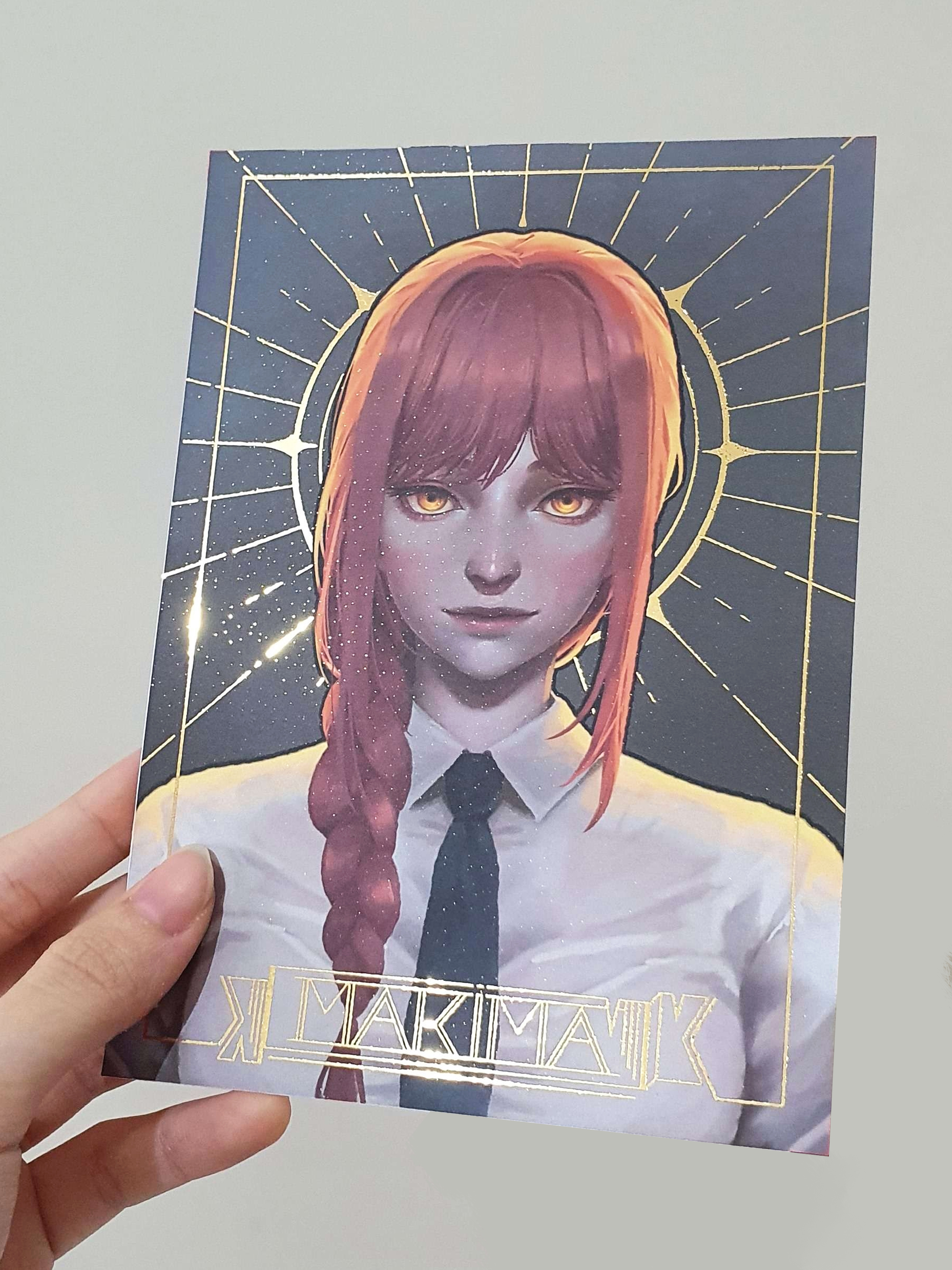 Shiny gold foiled prints of multiple fandoms. For now, only Makima, Zhongli, and Mercy are available to purchase. I also have an original piece available to purchase :)