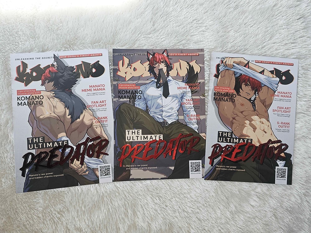 Komano Manato from Zenless Zone Zero, ready on A5 print. It has embossed red foiling and UV spot finishing, giving a luxurious look to the final product.